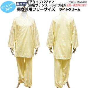 パジャマ業務用 ポリ65%綿35% 男女兼用フリーサイズ 1cmサテンストライプ 甚平タイプパジャマ ライトクリーム 三露産業 病衣 部屋着 ホテル 旅館 民宿 民泊