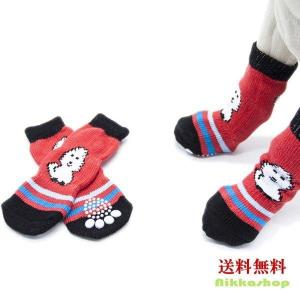 犬 靴下 滑り止め 老犬 ハイソックス レッド S-XLサイズ 4個セット 肉球保護 汚れ防止 災害 保護 介護 リハビリ 怪我 防寒 小型犬 中型犬 大型犬 猫