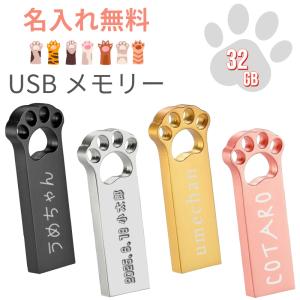名入れ 無料 にくきゅう USBメモリ 32GB ステンレス 名前入り 彫刻 刻印 肉球 ギフト 可愛い 猫の手 フラッシュメモリー Uディスク データ保存 小型 軽量