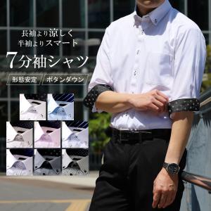 七分袖 ワイシャツ メンズ ボタンダウン 形態安定 Yシャツ クールビズ 7分袖シャツ 半袖 五分袖 夏 ビジネス カジュアル