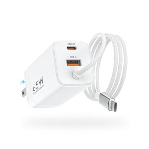 タイプc 65W 充電器 1.5mケーブル一体型 3ポート ACアダプター【折畳式プラグ&GaNIII採用&PSE認証&ナイロン編み 断線防止】