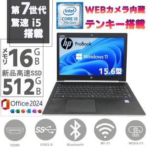 爆買 ノートパソコン PC 新品 SSD512GB メモリ16GB Windows11 MSoffice2024 第七世代Corei5 15.6型 HP ProBook 450G5 無線 カメラ テンキ