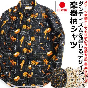 VINTAGE EL 長袖シャツ メンズ 楽器柄 譜面柄 楽譜柄 シャツ 柄シャツ 音楽 ミュージック ピアノ バイオリン サックス ホルン 日本製 爆買