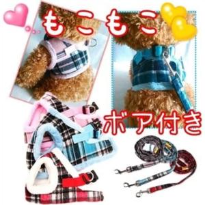 ハーネス リード 秋冬 防寒 冬 暖かい ファー付 犬用 小型犬 中型犬 犬 猫 胴輪 ペット ウェア 洋服 ベスト (M~LL)犬服 猫服 毛皮 フリース ボア