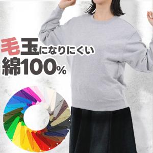 トレーナー レディース 綿100% コットン100% 無地 裏毛パイル地 シンプル 厚手 袖リブ あったかい 暖かい 防寒 秋冬トップス 薄い 部屋着 軽い おそろい 5044