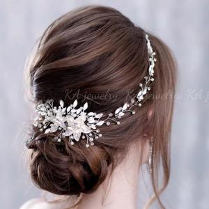 ヘッドドレス ウェディング ヘアアクセサリー シルバー 結婚式 ウエディング 髪飾り コーム ヘッドアクセサリー お花 フラワー リーフ