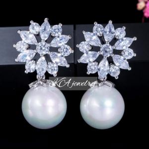イヤリング キュービックジルコニア パール シルバー 結婚式 ウェディング ブライダル 結婚式 アクセサリー 揺れる