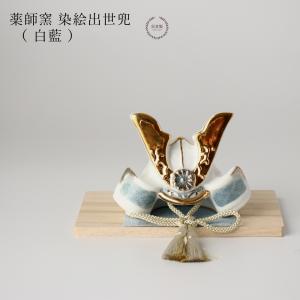 薬師窯 染絵出世兜 白藍 五月人形 コンパクト おしゃれ 陶器 瀬戸焼 兜飾り 初節句 端午の節句 こどもの日