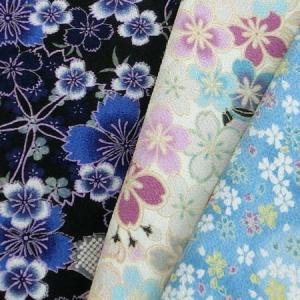 ちりめん 生地 和柄 10cm単位 桜 ブルー系3柄 日本製 服地 手芸 二越ちりめん 暖簾 風呂敷