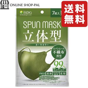 ISDG 医食同源ドットコム スパンレース不織布カラーマスク SPUN MASK (スパンマスク) 個包装 7枚入り カーキ