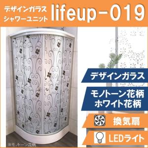 シャワーユニット lifeup-019 (モノトーン花柄・ホワイト花柄)W900×D900×H2110 ライト ファン 付 インテリア性抜群