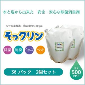 水と塩から出来た 次亜塩素酸水6L 濃度500ppm そっクリン 3Lパック×2個セット 安全、安心な除菌、消臭剤