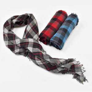 チェック 大判ストール リバーシブル 赤 青 レッド ブルー グレー 綿100 春 夏 秋 冬 フリーサイズ メンズ 2011-1