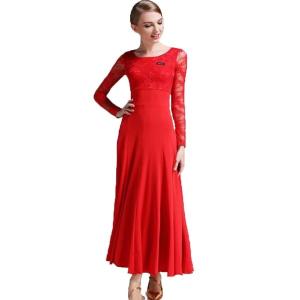 社交ダンス レース ラウンドネック ボールルーム ワンピース ダンスドレス レッド ロイヤルブルー