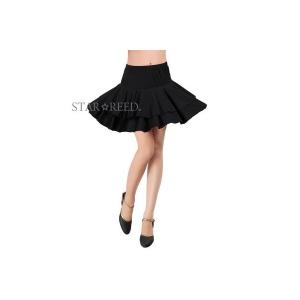 社交ダンス スカート ミニ フレア 二段 ブラック 練習 レッスン デモ ラテン