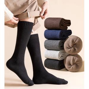 メンズ用 ハイソックス 2足セット 靴下 あったか 裏起毛 厚手パイル 全6色 綿混 秋冬 防寒 冷え対策 アウトドアにも ロングソックス