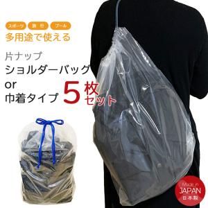 片ナップショルダーバッグorビニール巾着(透明)5枚セット ショルダー 片ひも シャンテバッグ ビニール 巾着 ポリ袋 ナイロン 収納袋