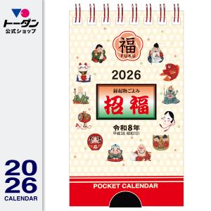2026年 招福・ポケットカレンダー(メモ付) 12.3 x 7cm TD-30182 / 運勢・開運・縁起物 / トーダン