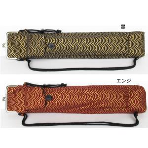 篠笛ケース(袋)青海波文様金箔プリント がま口型 手作り お囃子 和太鼓 サイドポケットには鉢や扇子も入ります。