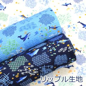 生地 布 海の中 水中 かめ クジラ リップル 和柄 浴衣 甚平 リップル サッカー 綿100% 約110cm幅 38150-6 ゆうパケット1.5m対応 10cm単位価格