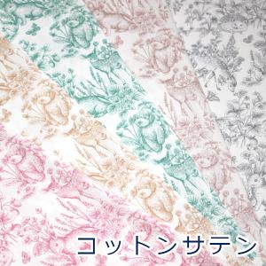 生地 布 Nerori Rose ガーデン 動物柄 薄手 コットンサテン 綿サテン 綿100% 約108cm幅 NRF-01 ゆうパケット3m対応 10cm単位価格