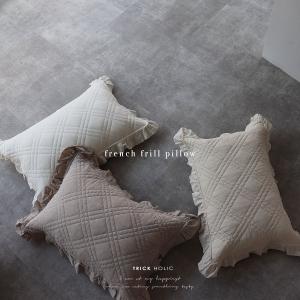 french frill pillow(一体型)約21×35cm)ivory / hazelnuts 枕 まくら カバー トリックホリック