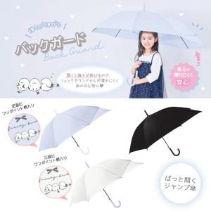 ランドセルが濡れない傘 55cm バッグガード 長傘 | 柄 無地 シマエナガ ワンポイント ジャンプ傘 ジャンプ かさ 雨具 梅雨 後ろが伸びる傘 伸びる 濡れにくい