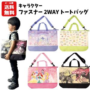 【メール便送料無料】キャラクター ファスナー 2WAY トートバッグ | すみっコぐらし ディズニー プリンセス 恐竜 手さげ ショルダー 1980
