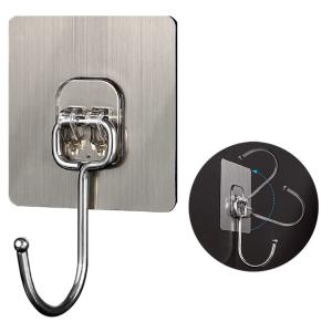 ステンレス製強力フック 7*7cm 壁掛けタイプ 両面テープと強力粘着剤使用 壁に傷つけない 便利な粘着フック防水 吊り下げ用 事務所、浴室、台所、玄関など