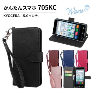 (ストラップ2種付) wisers スマホケース かんたんスマホ 705KC 専用 手帳型 京セラ Y!mobile 5.0インチ スマートフォン ケース カバー [2018 年 新型] 全5色