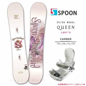 スノーボード 板 レディース 2点 セット スノボー ビンディング SPOON スプーン QUEEN ブランド 初心者 簡単 イージー キャンバー ボード お洒落 グラトリ 白