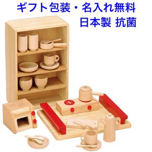 日本製 カワイ おままごと キッチン セット 木製 ままごと 卓上 木のおもちゃ 名入れ 名前入り KAWAI(抗菌ままごとあそびトレイセット)