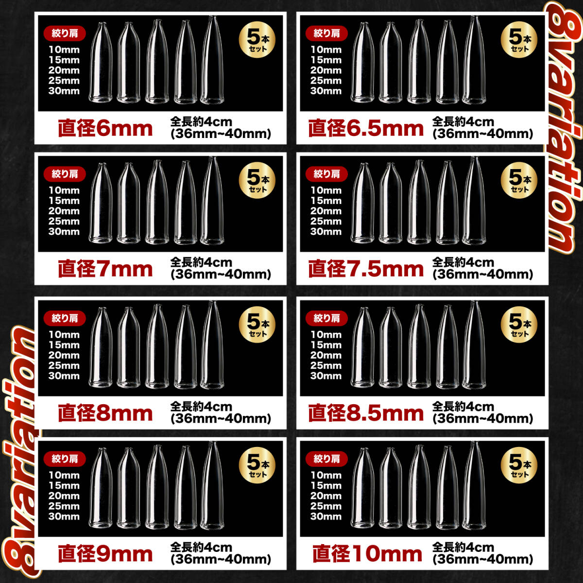 Product name: 内径7mm 5本セット 絞り寸法10 15 20 25 30mm ヘラウキ 成形器 耐熱ガラス カヤウキ ガラス管 成型器 ヘラ浮き自作 ヘラブナ Midorino