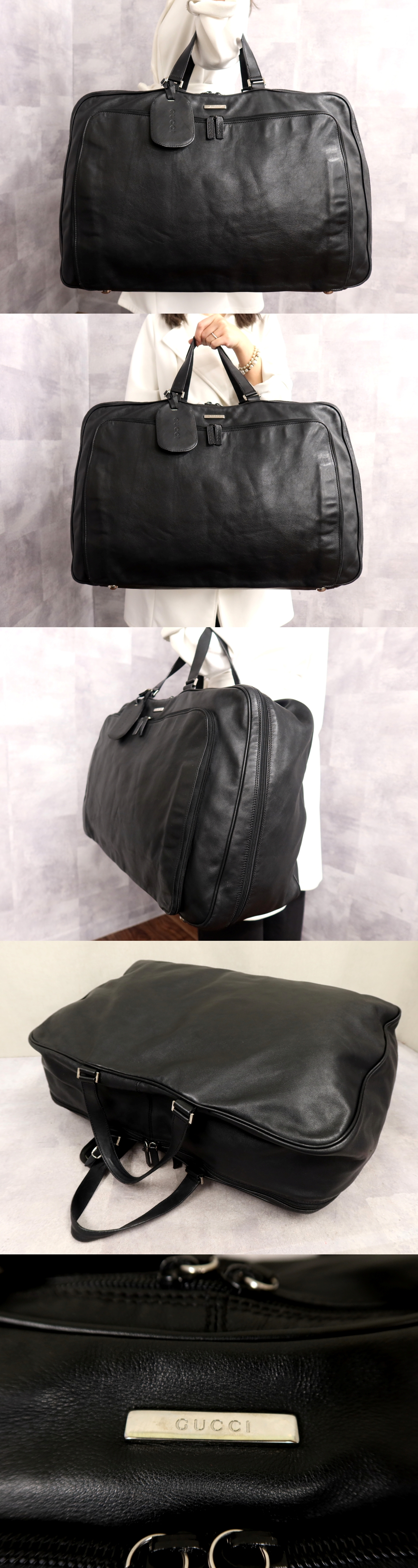 Store ●超美品●GUCCI グッチ●カーフ レザー 本革●ボストン バッグ●黒●シルバー金具●イタリア製●大容量●旅行●収納 かばん●Js64415