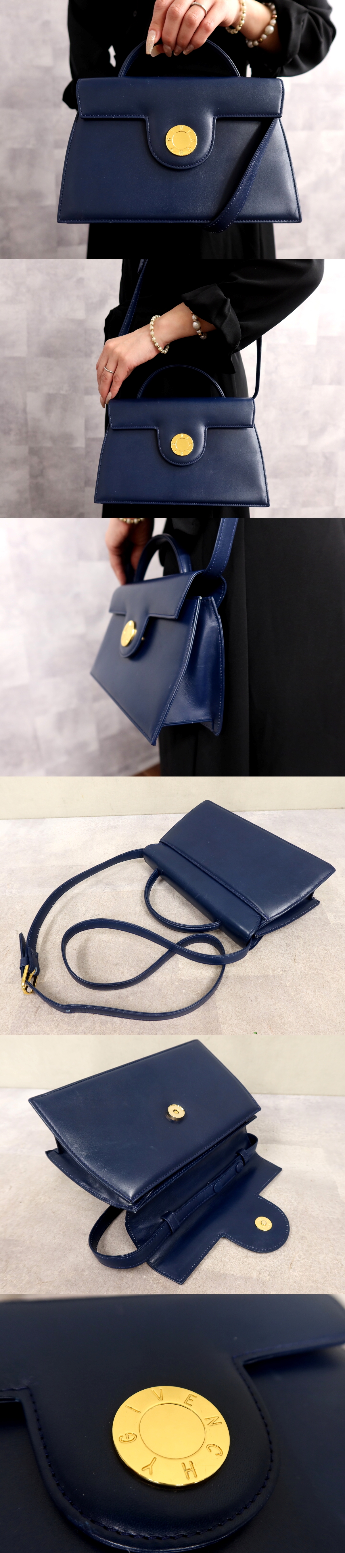 Product name: ●超美品●GIVENCHY ジバンシィ●サークルロゴ●カーフ レザー 本革●2way ハンド バッグ●ネイビー●ゴールド金具●かばん●Js66548