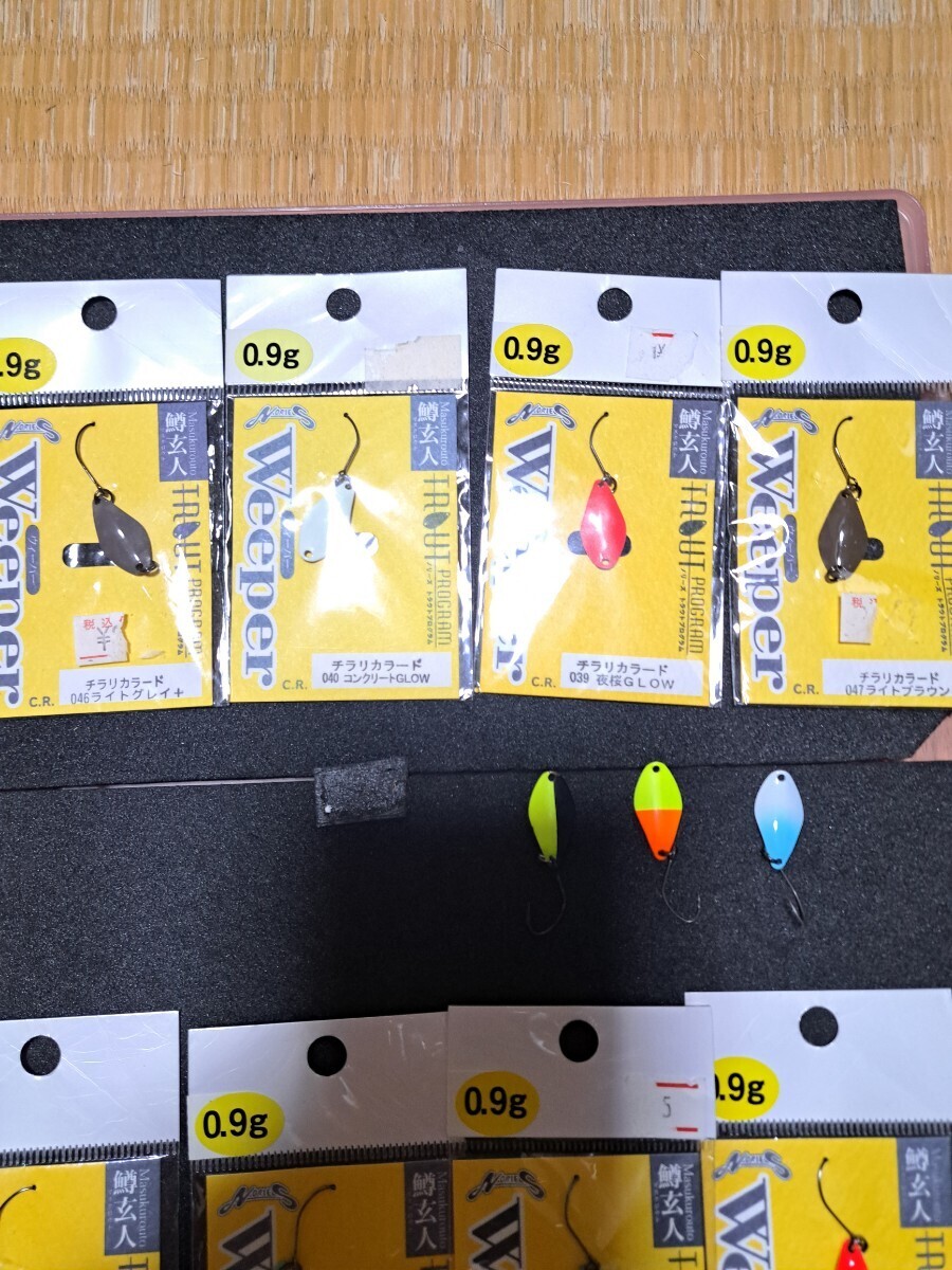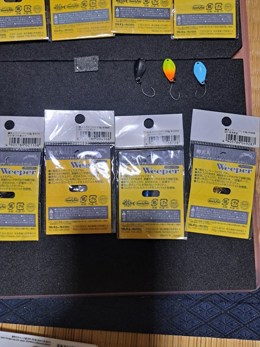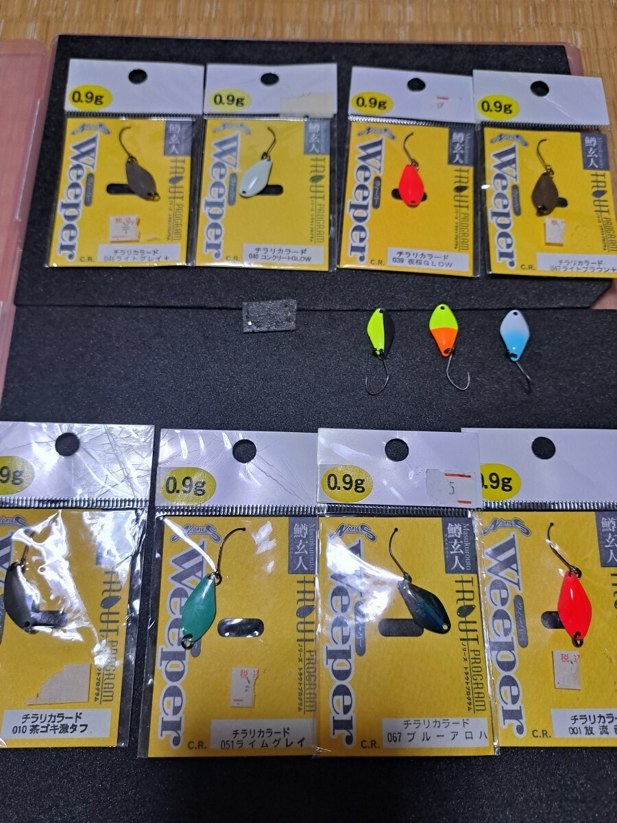 ウィーパー0.9グラム11個を出品いたします。カラーの詳細は画像でご確認ください。購入し、数個は2~3回使用し、残りは新品のままボックス保存していたので、使用に差し障るような傷は見当たりませんが、あくまで中古品であり、小さな傷や汚れ等はあるかもしれませんので、その点をご理解いただき、入札願います(ノークレームノーリターンでお願いいたします。)。細かいことが気になる場合は、入札をお控えいただくのが賢明かと思います。