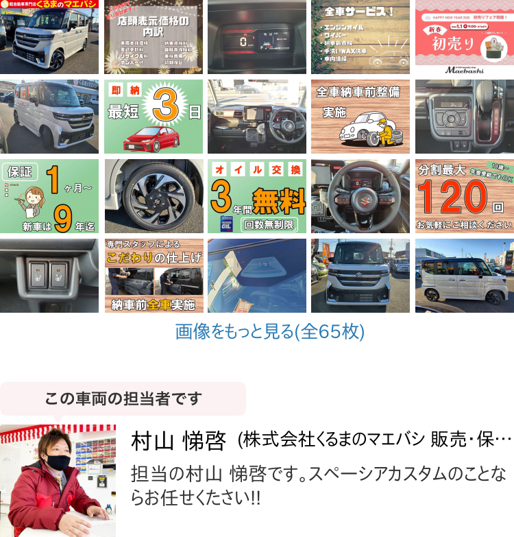 くるまのマエバシは、軽自動車の未使用車・中古車を中心に60台以上の車を展示! また、グループ総在庫は300台以上です!