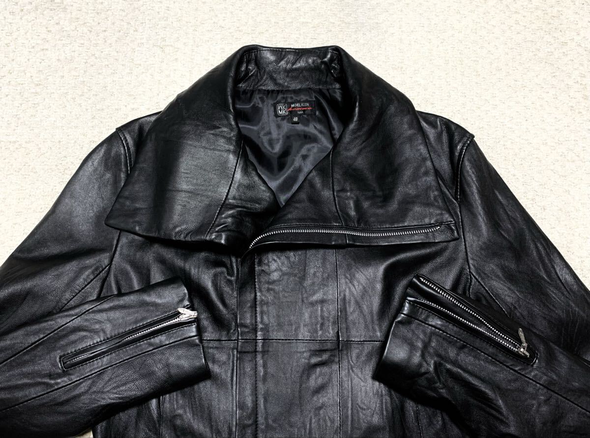 Product name: 極上:MICHEL KLEIN HOMME.変形襟 ラムレザー ライダース 48(L/黒/Wジップ/上質.羊革/肩45幅50丈64/V系/ifsixwasnine lgb tornado mart type