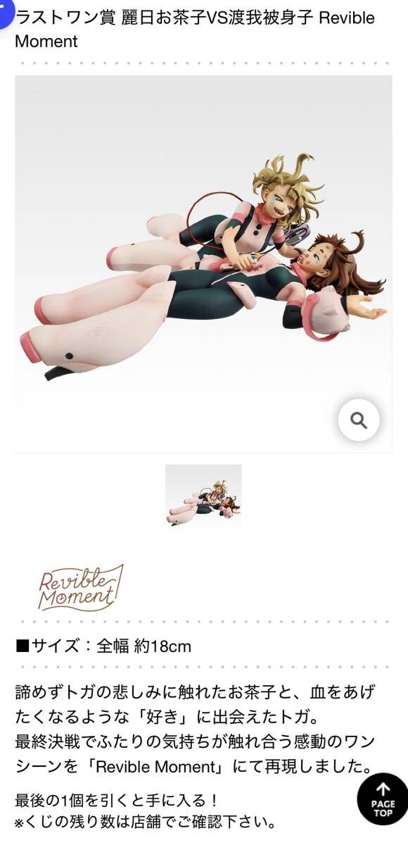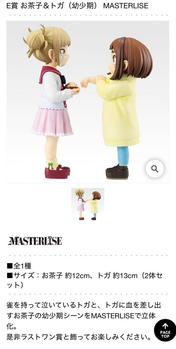 BANDAI NAMCO 一番くじ 僕のヒーローアカデミア -幸せの上に-のE賞 お茶子&トガ(幼少期) MASTERLISEとラストワン賞 麗日お茶子VS渡我被身子 Revible Momentのフィギュアセットになります。