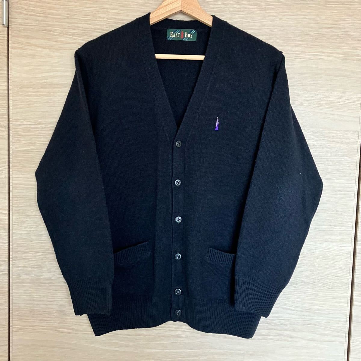 【美品】EASTBOY イーストボーイ ラムウールカーディガン7G 女神 11 スクール カーディガン ネイビー 紺 ウール 長袖 ラム 制服 通学