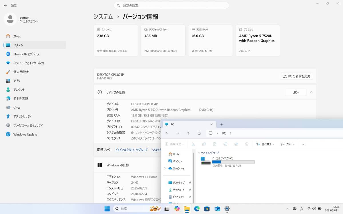 ◎このパソコンは、Windows 11をクリーンインストールした状態でお届けします。