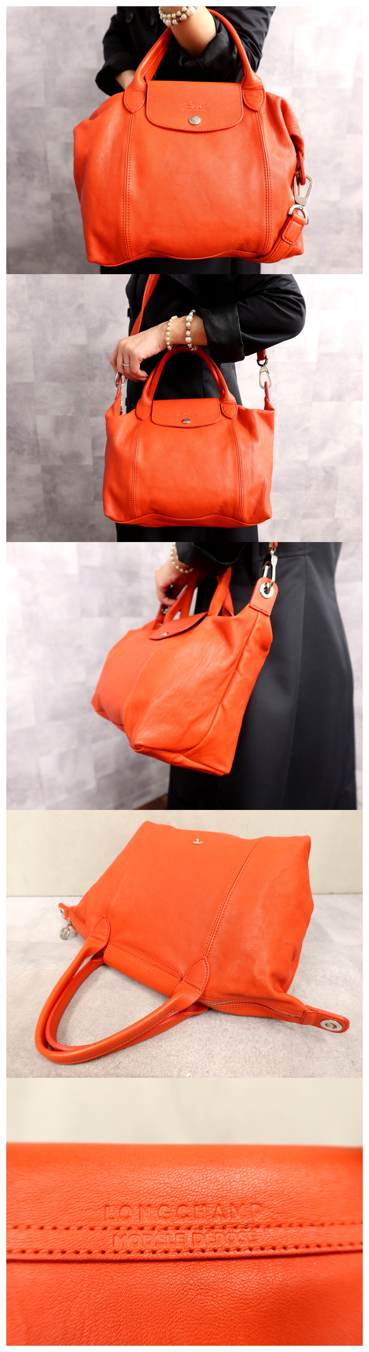 Product name: ●超美品●Longchamp ロンシャン●ル プリアージュ キュイール●カーフ レザー 本革●2way ハンド バッグ●オレンジ●SV金具●B5●Js64552