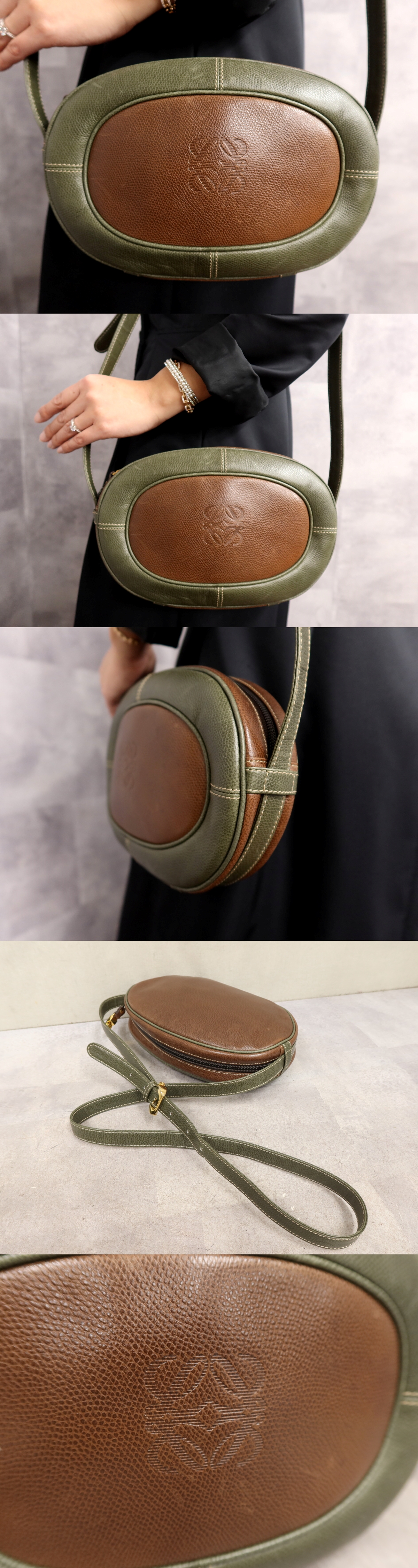 Product name: ●超美品●LOEWE ロエベ●アナグラム●ロゴ型押し●カーフ レザー 本革●ショルダー バッグ●グリーン ブラウン●ゴールド金具●Js64361