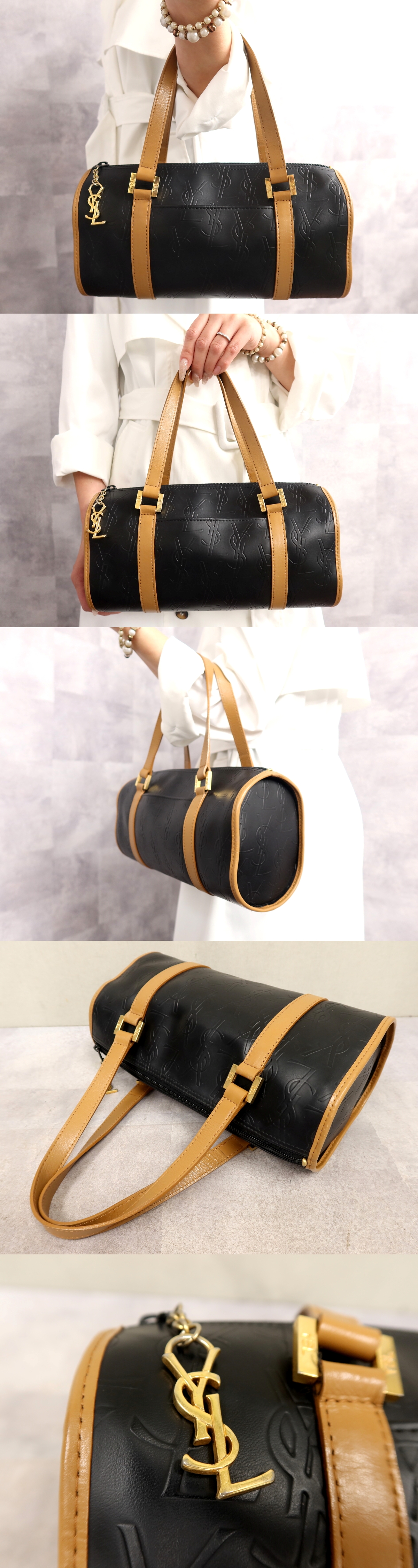 Product name: ●超美品●YSL Yves Saint-Laurent イヴ・サンローラン●PVC カーフ レザー 本革●ハンド バッグ●黒 茶●G金具●ヴィンテージ●Js66801