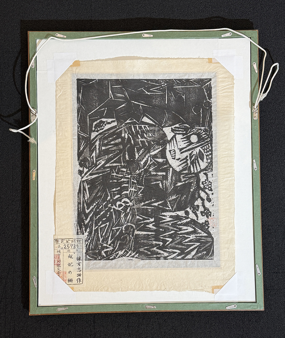 Product name: 【真作 棟方志功鑑定委員会鑑定証】「棟方志功 観妃の柵 額装」大正昭和 文化勲章 板画 絵画