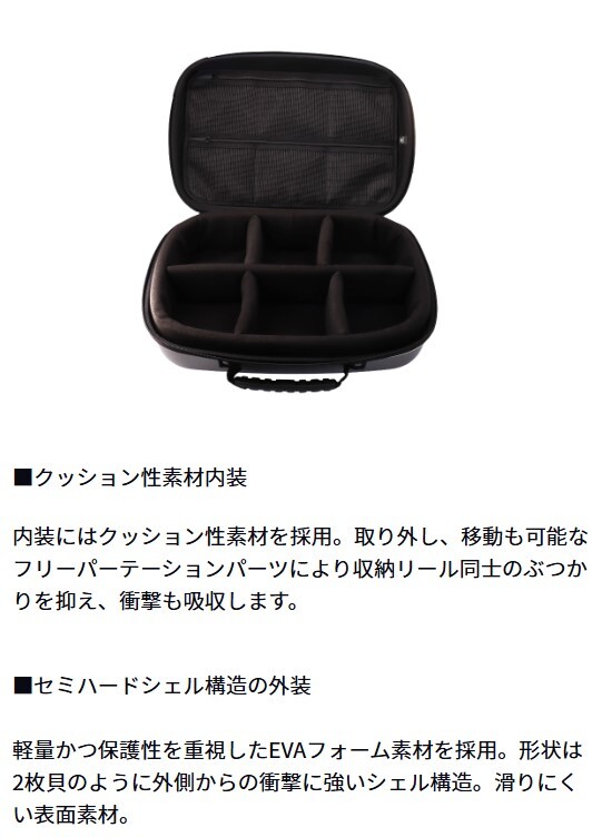 本体内部はリールの傷つきを抑える厚肉クッション材仕様。