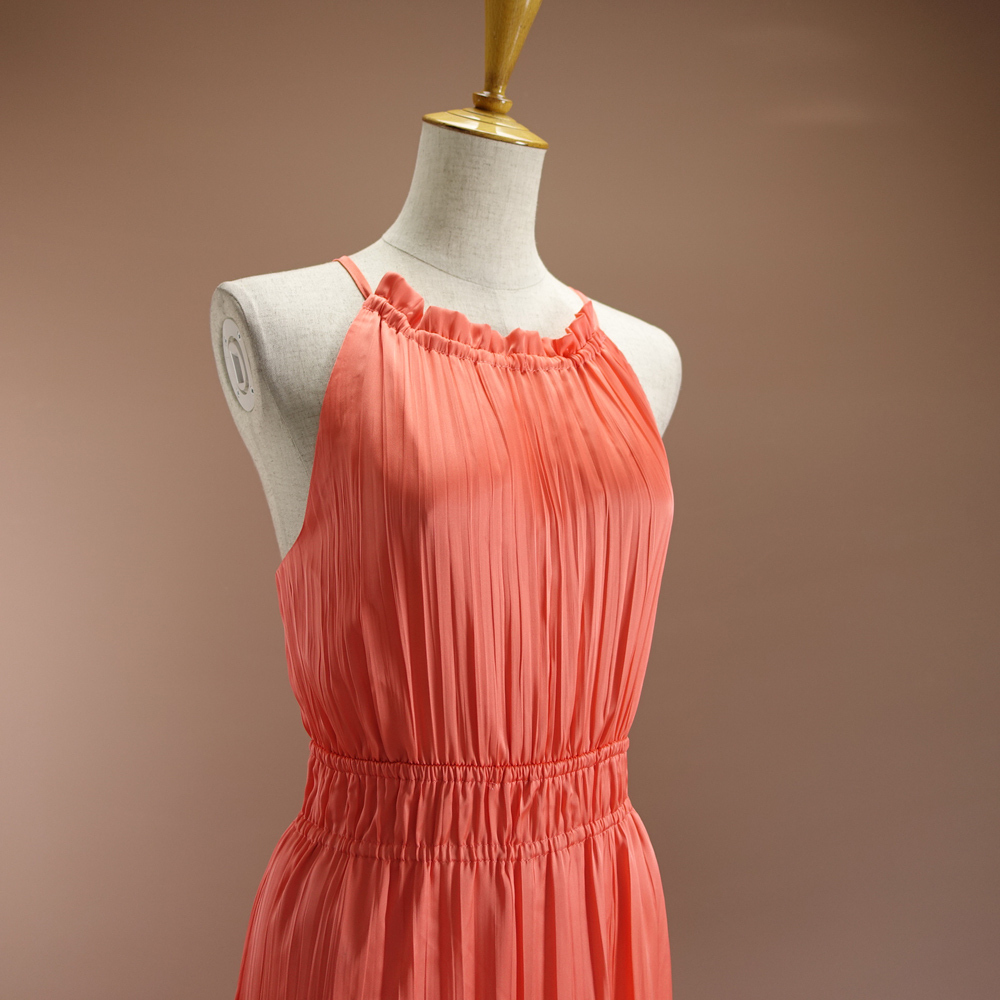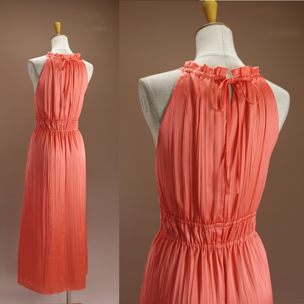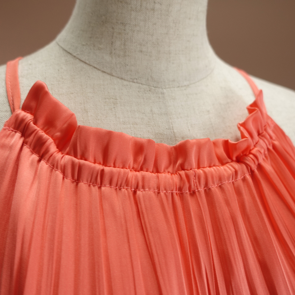 半額セール.新品アンクライン 17号 オレンジ ピンク 珊瑚 プリーツ ノースリーブ ロングワンピース パーティドレス リゾート 凛46C2604