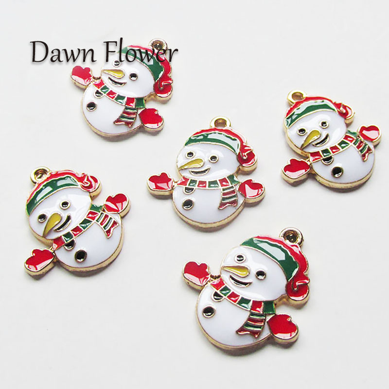 【D-0992】5pcs 雪だるま 24×22mm ホワイト&レッド チャーム ハンドメイドパーツ