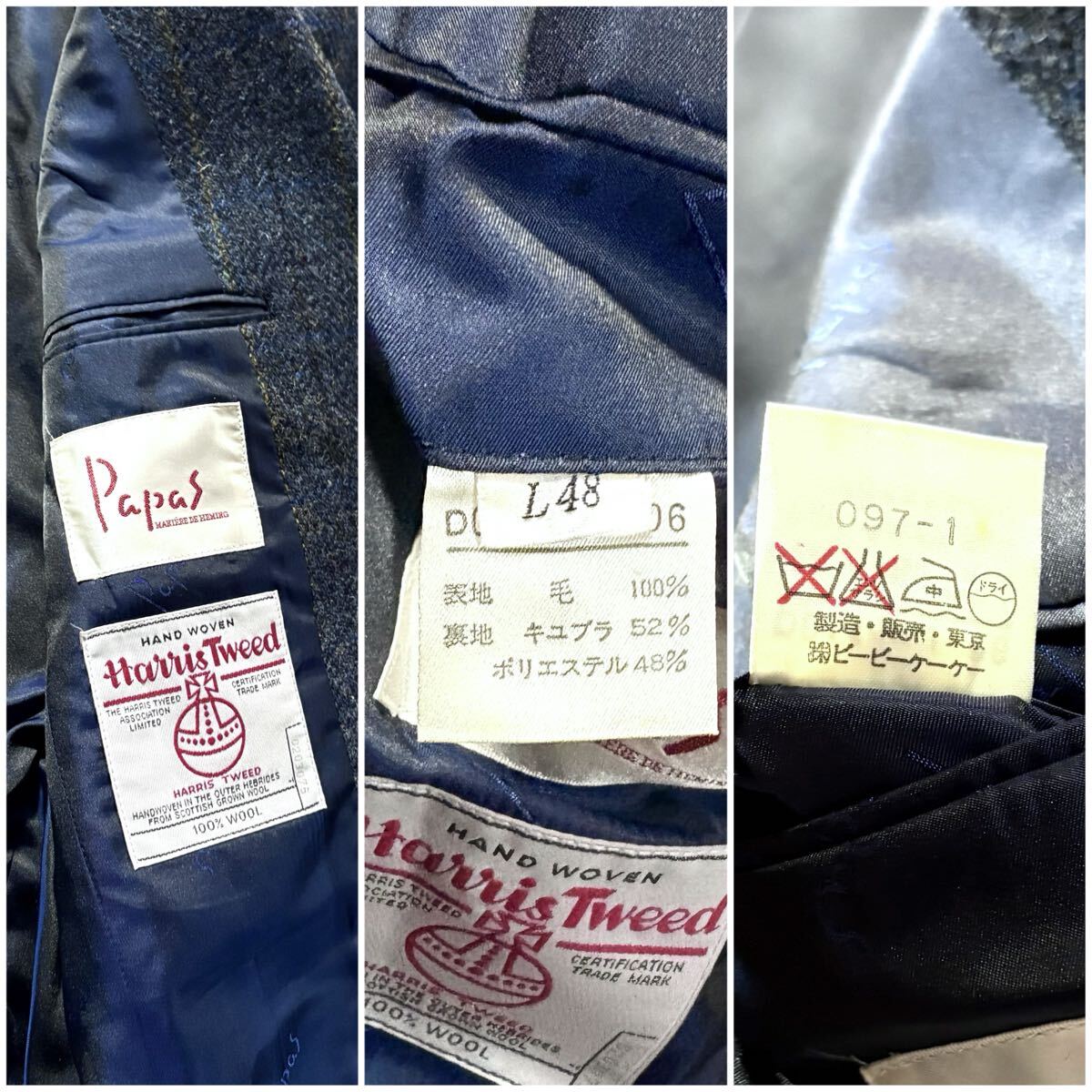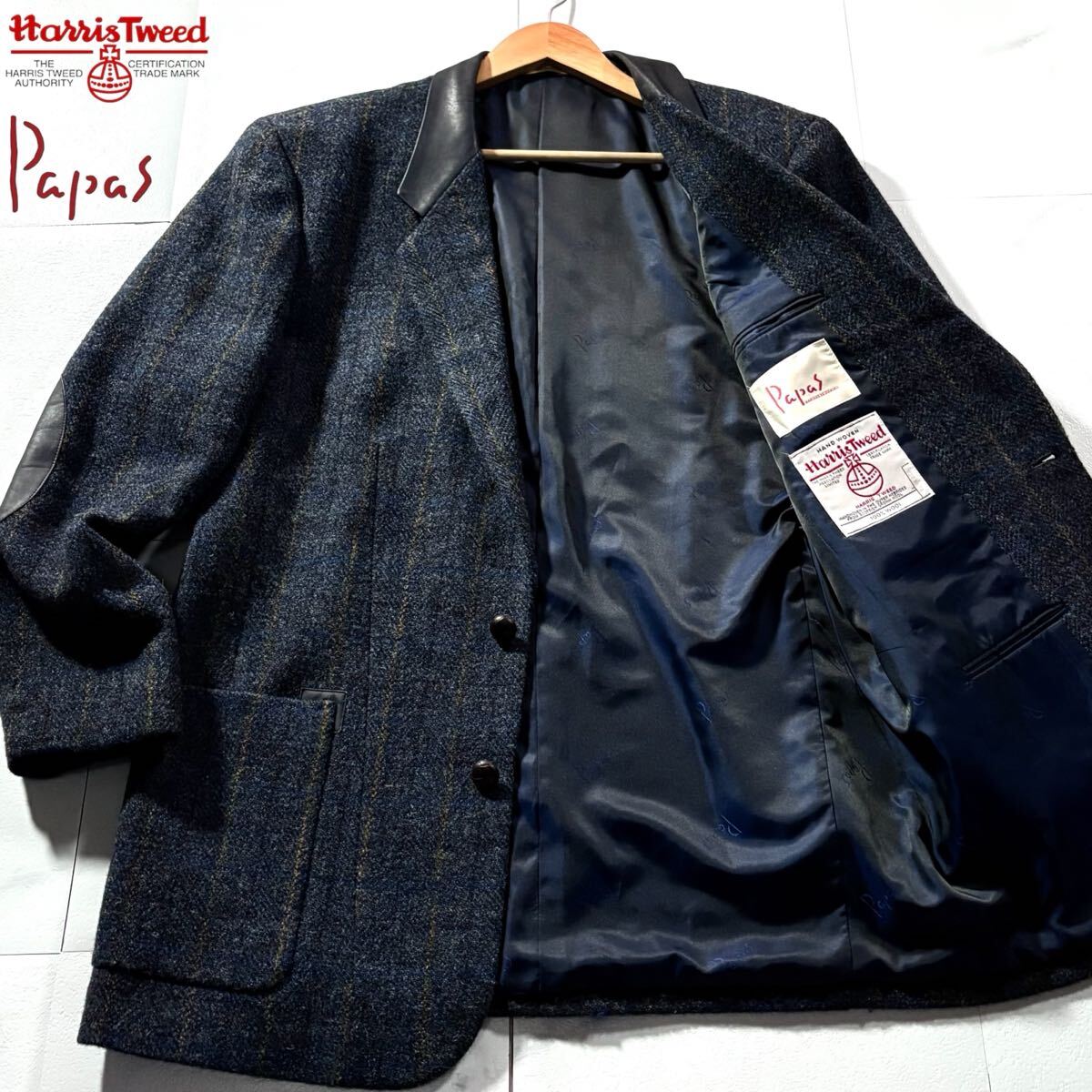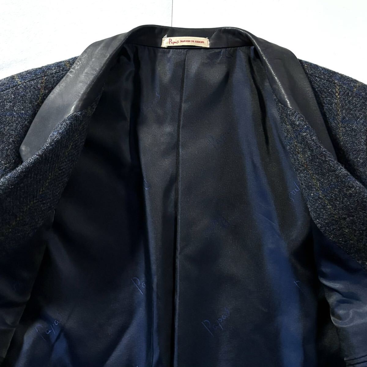 Product name: 極美品/XLサイズ相当●別注品 PAPAS × HARRIS TWEED パパス ツイード レザー切替 テーラードジャケット くるみボタン チェック 襟革 48
