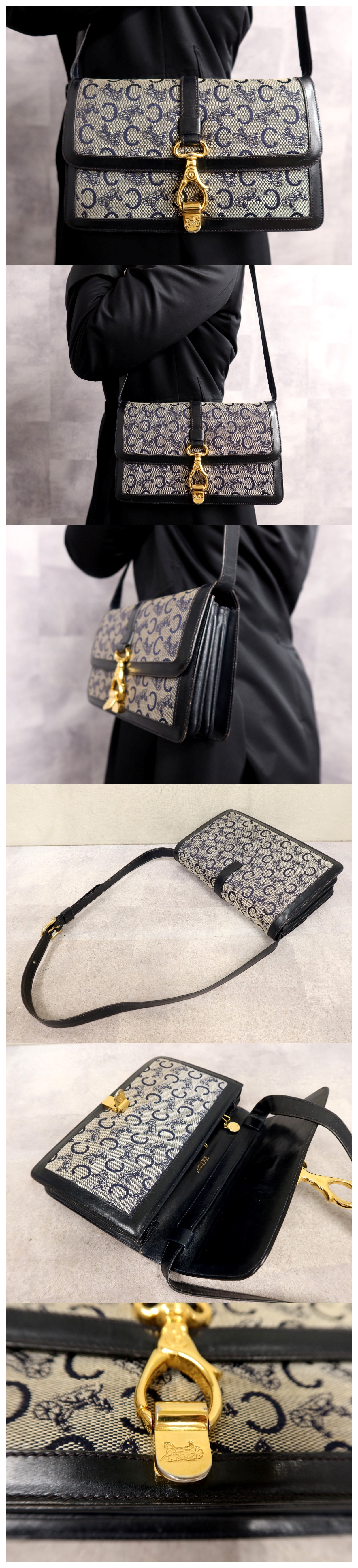 Product name: ●超美品●CELINE セリーヌ●Cマカダム●キャンバス カーフ レザー 本革●ショルダー バッグ●ネイビー グレー●ゴールド金具●Js64459